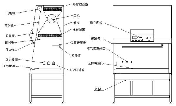 圖2. 生物安全柜的柜體結(jié)構(gòu)
